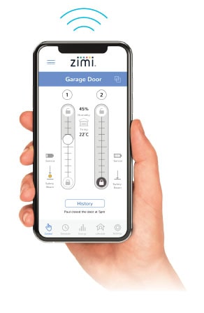 *Works with the Google Assistant. Zimi Cloud Connect is required for control of your door when away from home and voice control with Google Assistant.